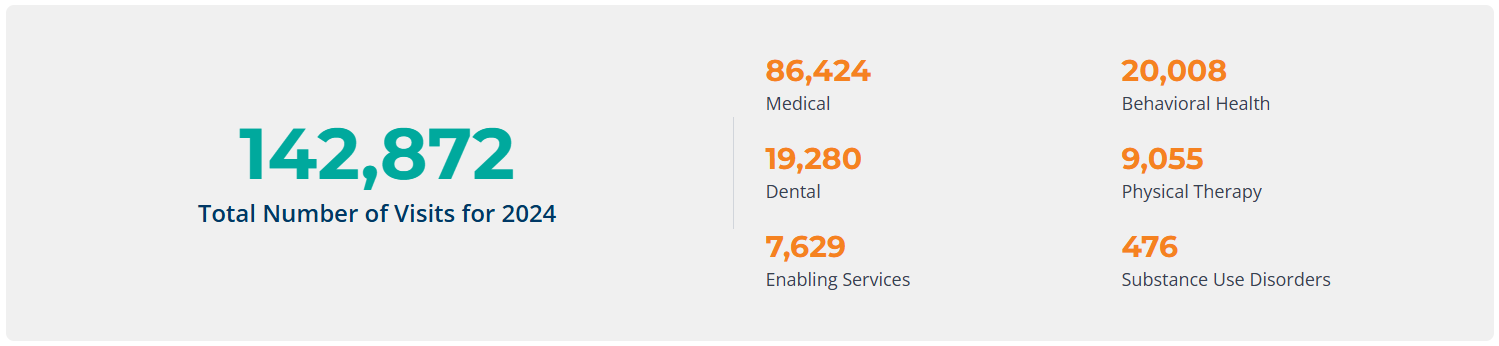 In 2024 alone, your support has enabled a tremendous number of patient visits across our essential services. Every number represents a person who received the care they needed.